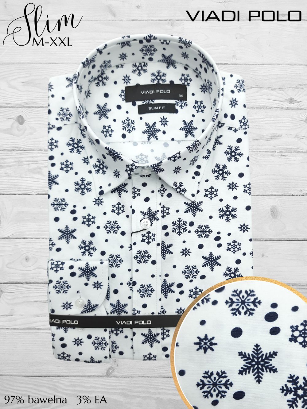 Świąteczna koszula slim z nadrukiem cyfrowym M-XXL